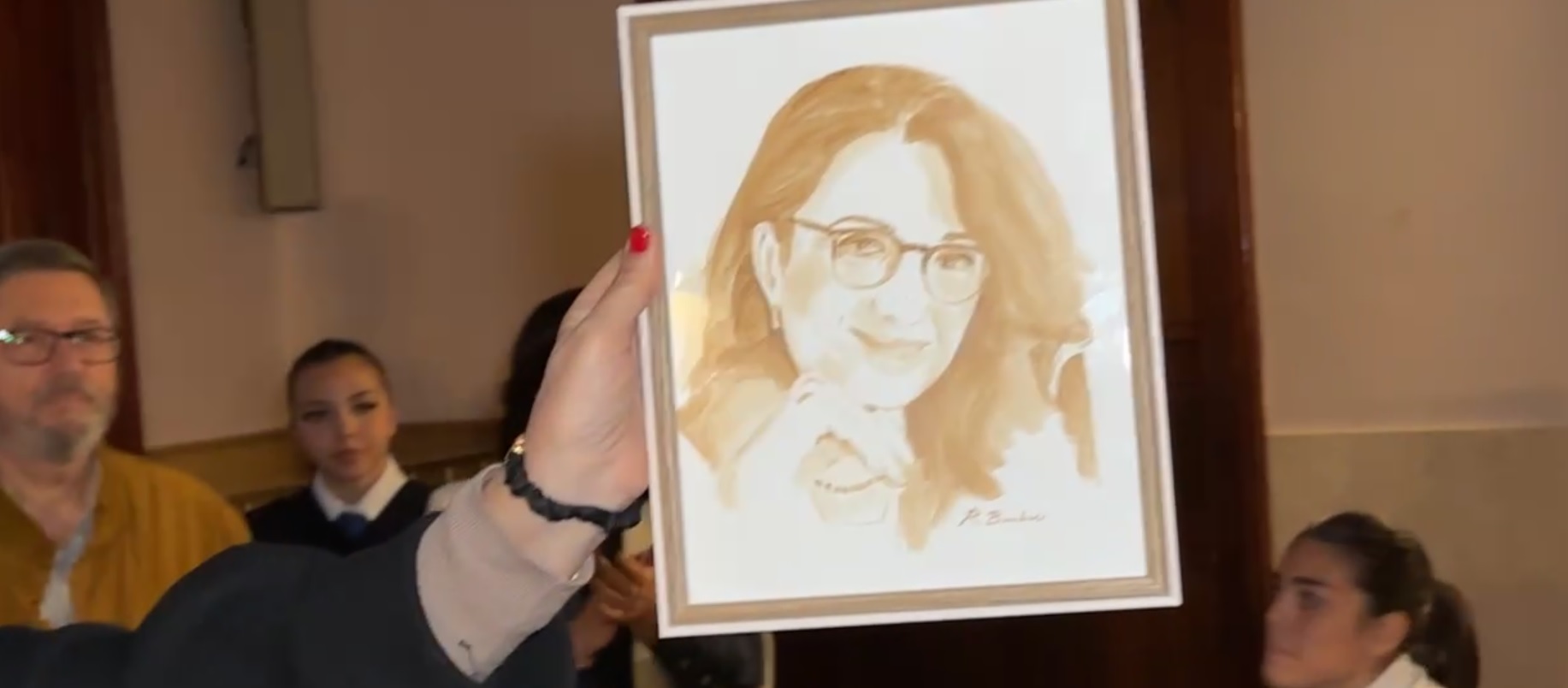 Presenti all’incontro anche la preside del “Caio Duilio”, dottoressa Daniela Pistorino insieme al vice preside prof. Salvatore Gatto e una nutrita presenza del corpo docenti. L’artista e docente Bombaci, per l’occasione, ha omaggiato la scrittrice con un ritratto creato con la tecnica del caffè.
