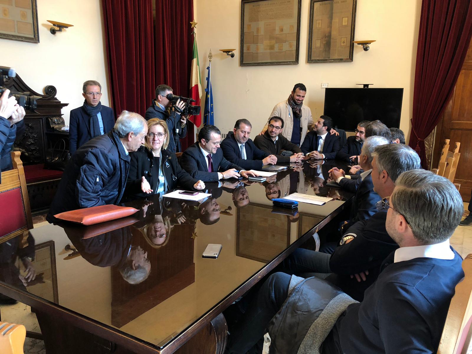 Dopo un primo approccio aperto ai media, la riunione è proseguita a porte chiuse. Intorno a mezzogiorno la chiusura ed il risultato dell’incontro sintetizzato dal sindaco nella intervista-video.